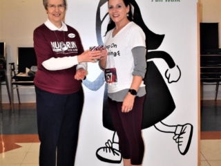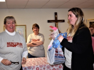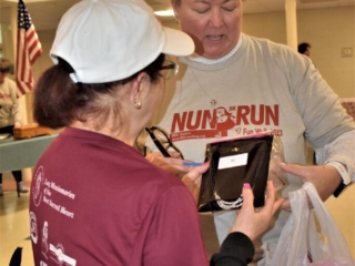 MSC Sisters thank our volunteers: those who braved the weather outside to park cars and to line our 5K course; Ted Robidas, our esteemed and talented DJ; Barb LeVan our terrific photographer; David Decembrino who inspired us all with his rendition of the National Anthem; the generous folks who sold food and basket raffle tickets; and our Nun Run Committee Members Andrea Bensusan, Fran Burkhart, Kathy Blume, Nancy Chaiko, Janet Decembrino, Joni Garza, Sue Kasopsky, Carol Noga, and Barb Spinka .